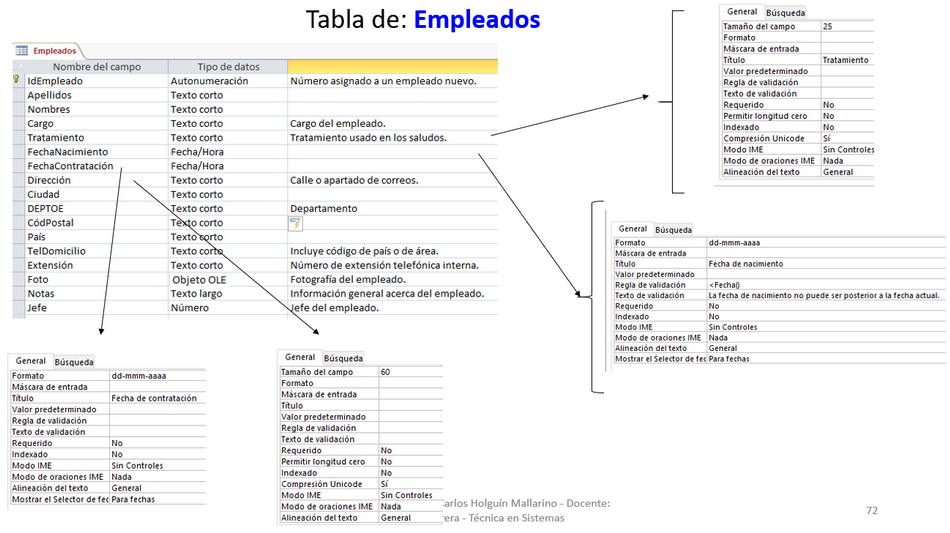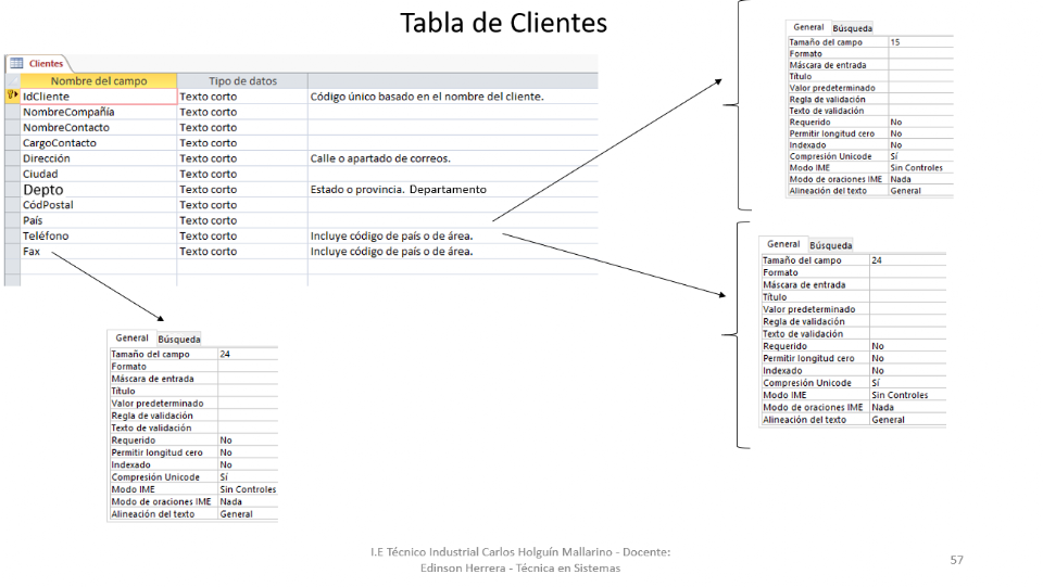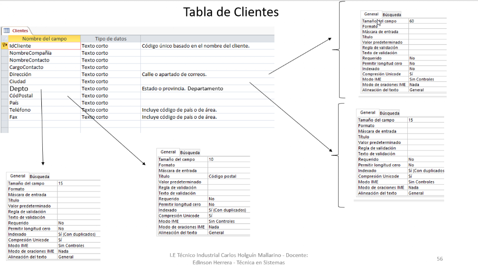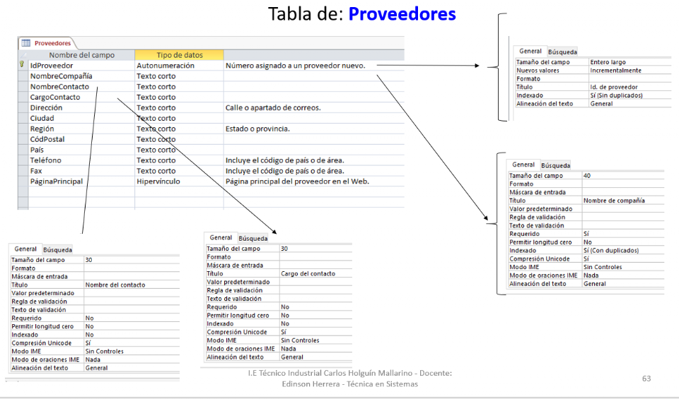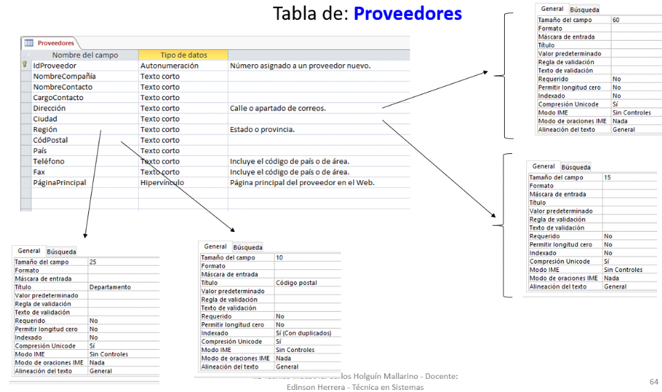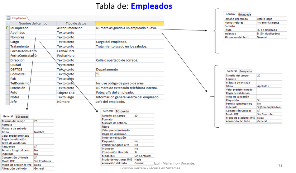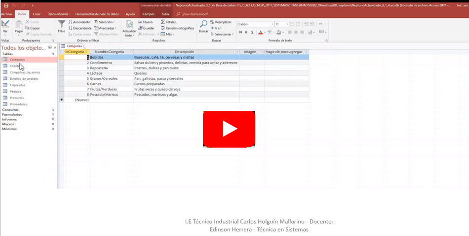 Clientes, Categorias, Productos,.... ; recuerde que la base de datos se llamará igual como se llama Ud, señor estudiante, por su primer apellido. Ejemplo si su apellido es Rodriguez la base de datos se llamará: rodriguez.accdb, y dentro de esta base de datos, crearemos las tablas que nos indique el profesor.