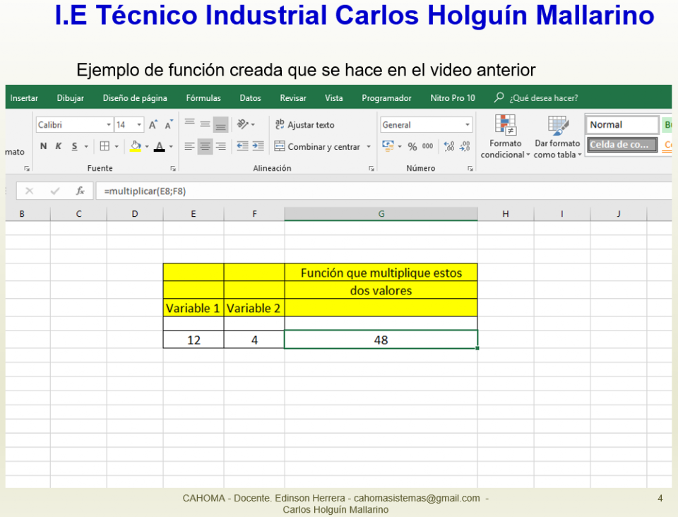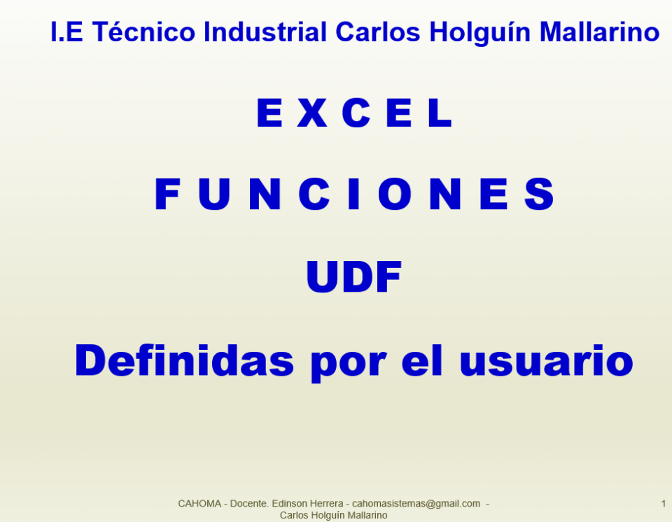 Ejercicio UDF Individual, que deben hacer los estudiantes en un archivo Excel y que debe ser grabado con la extensión .xlsm , luego ser enviado al correo del profesor Edinson: d.car.edinson.herrera@cali.edu.co