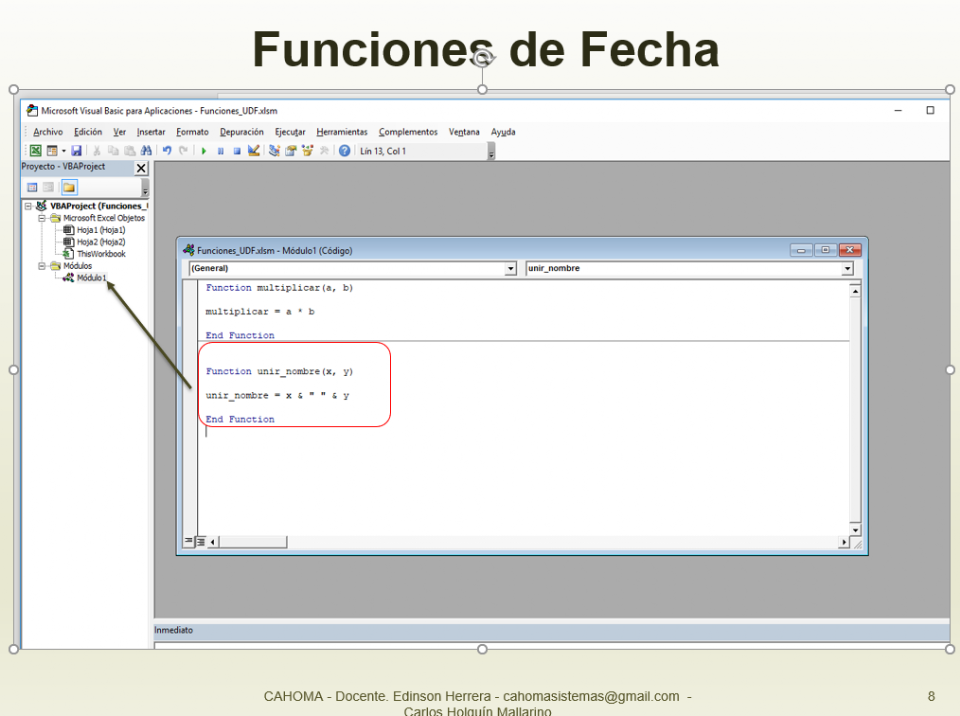 **** Recordar que cuando se va a grabar una función UDF, debe ser con extension .XLSM ****