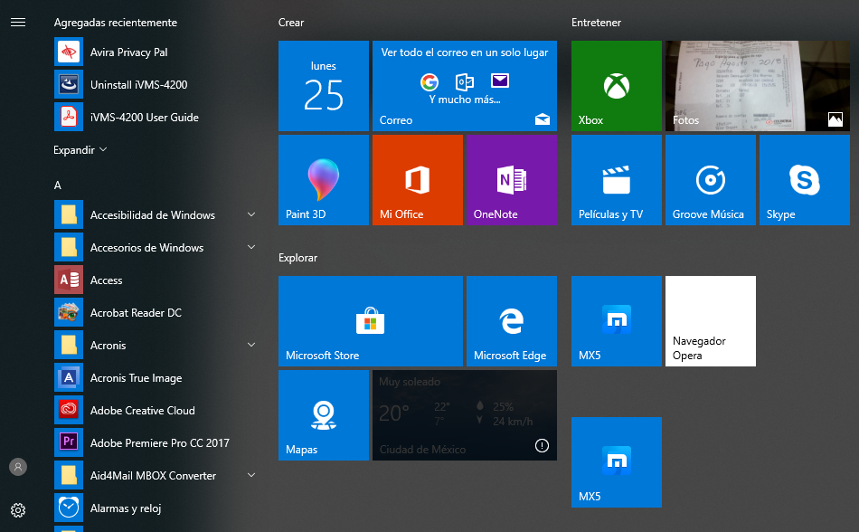 Si digita la tecla Windows ( Win ) solamente, le aparece el menú de inicio